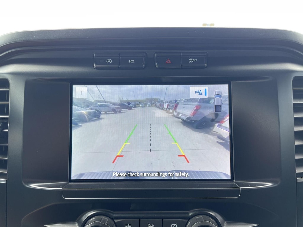 - The vehicle is equipped with a camera that displays an image of the area behind the vehicle on an interior display.