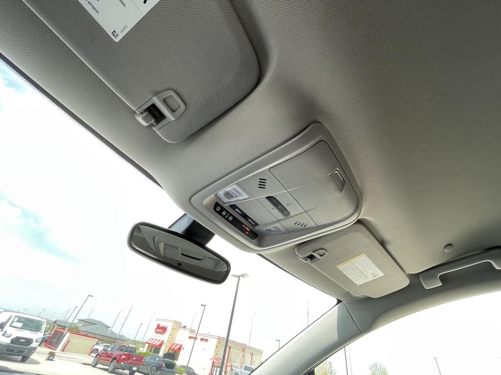 - The vehicle is equipped with a camera that displays an image of the area behind the vehicle on an interior display.