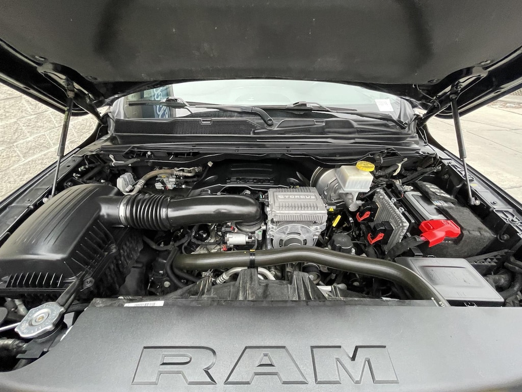ENGINE: 5.7L V8 HEMI MDS VVT ETORQUE, TRANSMISSION: 8-SPEED AUTOMATIC (8HP75), QUICK ORDER PACKAGE 27Z BIG HORN, 3.21 REAR AXLE RATIO, WHEELS: 20 X 9.0 PREMIUM PAINT/POLISHED, TIRES: 275/55R20 OWL ALL SEASON, MONOTONE PAINT, DIAMOND BLACK CRYSTAL PEARLCOAT, DIAMOND BLACK CRYSTAL PEARLCOAT, BLACK, DELUXE CLOTH BUCKET SEATS, GVWR: 7,100 LBS, BIG HORN LEVEL 2 EQUIPMENT GROUP, NIGHT EDITION, ANTI-SPIN DIFFERENTIAL REAR AXLE, 4-CORNER AIR SUSPENSION, 33 GALLON FUEL TANK, REAR WHEELHOUSE LINERS, FRONT LICENSE PLATE BRACKET, RADIO: UCONNECT 5 W W/8.4 DISPLAY, REMOTE START SYSTEM, RAMBOX CARGO MANAGEMENT SYSTEM, CLUSTER 7.0 TFT COLOR DISPLAY, PARKSENSE FRONT/REAR PARK ASSIST W/STOP, 115V AUXILIARY POWER OUTLET